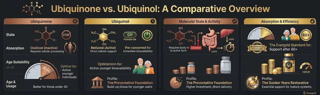 Evergold Rule: If you are over 60, don't waste your money on Ubiquinone. Your body likely can't "unlock" it. Look for "Kaneka Quality" Ubiquinol on the label.